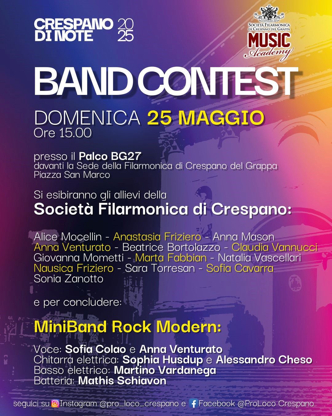 La Società Filarmonica di Crespano del Grappa riconosce, con documentato fondamento, il 1823 quale anno della sua fondazione. La Società Filarmonica di Crespano del Grappa è un’Associazione libera, apartitica e apolitica, con durata illimitata nel tempo e senza scopo di lucro. L’Associazione si configura come ente non commerciale e i suoi principali scopi Istituzionali sono quelli di curare l’Orchestra, i propri Laboratori di Formazione Musicale estesi ad ogni tipo di strumento e volti alla formazione del gruppo stesso e di diffondere la Cultura Musicale e Artistica come un bene per la persona ed un valore sociale.